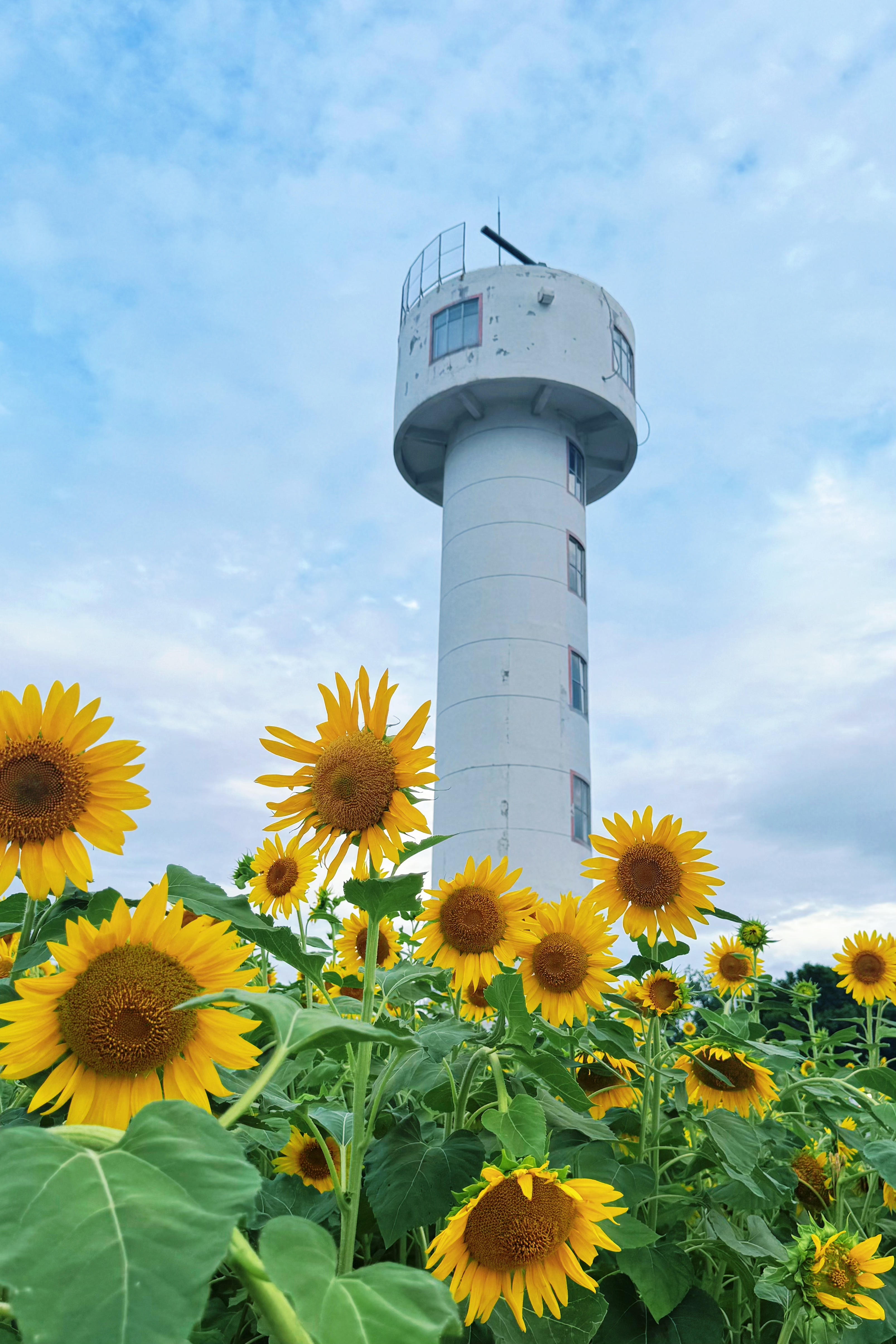 在网红打卡点——小白塔下,2400平方米的向日葵依偎在江边,整整齐齐地绽放,将夏日的明艳演绎得淋漓尽致。江滩工作人员特意挑选了植株高、花盘大的向日葵品种,经过悉心养护,这些向日葵茎秆粗壮,高度接近2米,每个花盘都沉甸甸的,充满生命力。