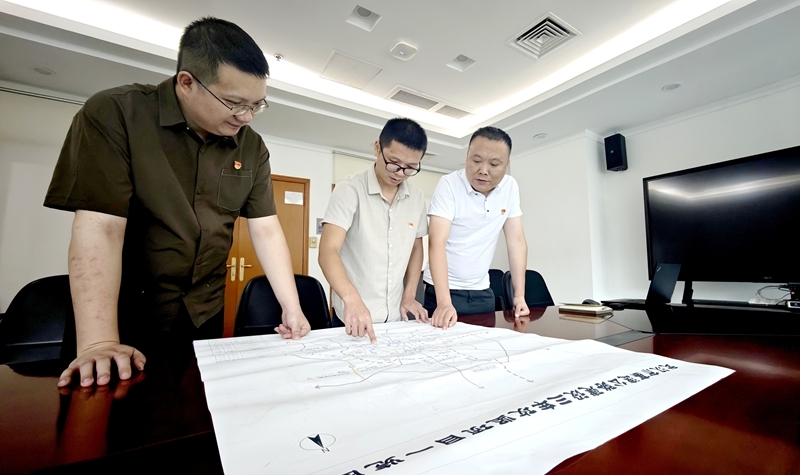 在公交站台,交通强国建设试点工作专班成员研究站点设置。